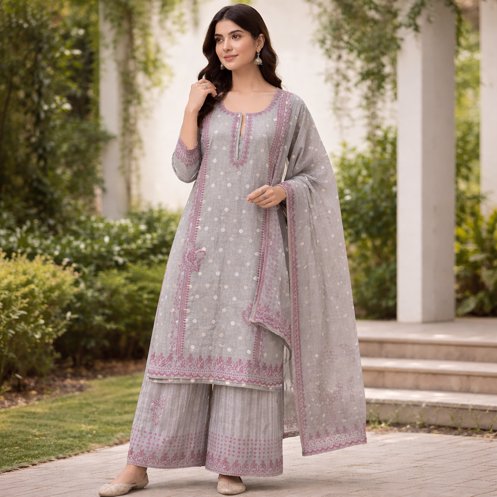 Elegant Grey Modern Punjabi Suit Design with Dupatta – Straight Cut Ethnic Wear