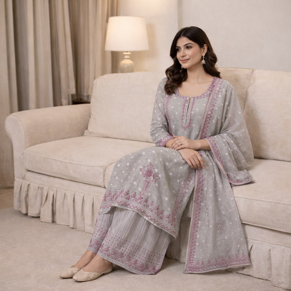 All the elements such as the silhouette or the dupatta contribute to forming a unified appearance. The outcome is the creation of a suit that is complete and well-conceived, as opposed to one that depends on extensive adornment to shine through.